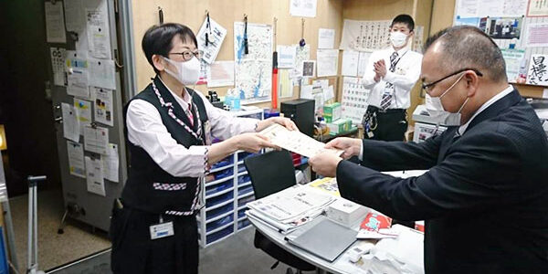 竹井主任、緊張の面持ちで…そりゃそうですよね、店長も次長も不在のサプライズ受賞ですもん…。