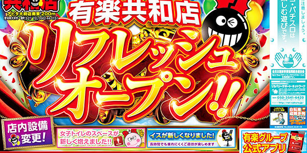 「リフレッシュ」した有楽共和店を今後とも宜しくお願い致します!