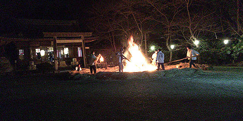 最後に野間神社で若衆が、かがり火を囲んで、伊勢音頭を歌ったり、酒を飲んだり、
