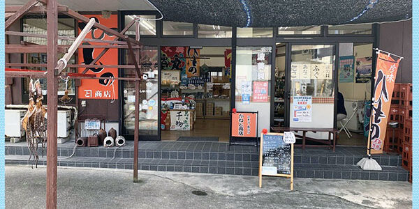 お店の目印として「漁師のひもの 製造直売」の看板が道沿いにありますので、こちらを参考にしてください。