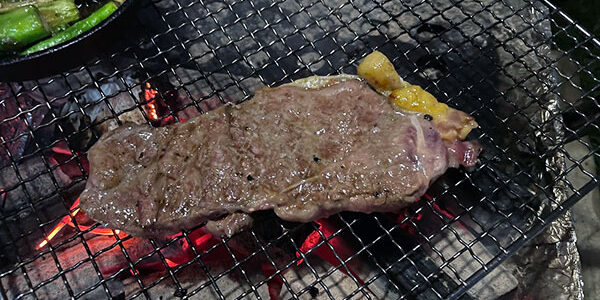 続いては『サーロインステーキ』をBBQで本格的に焼いてもらったのがこちら!